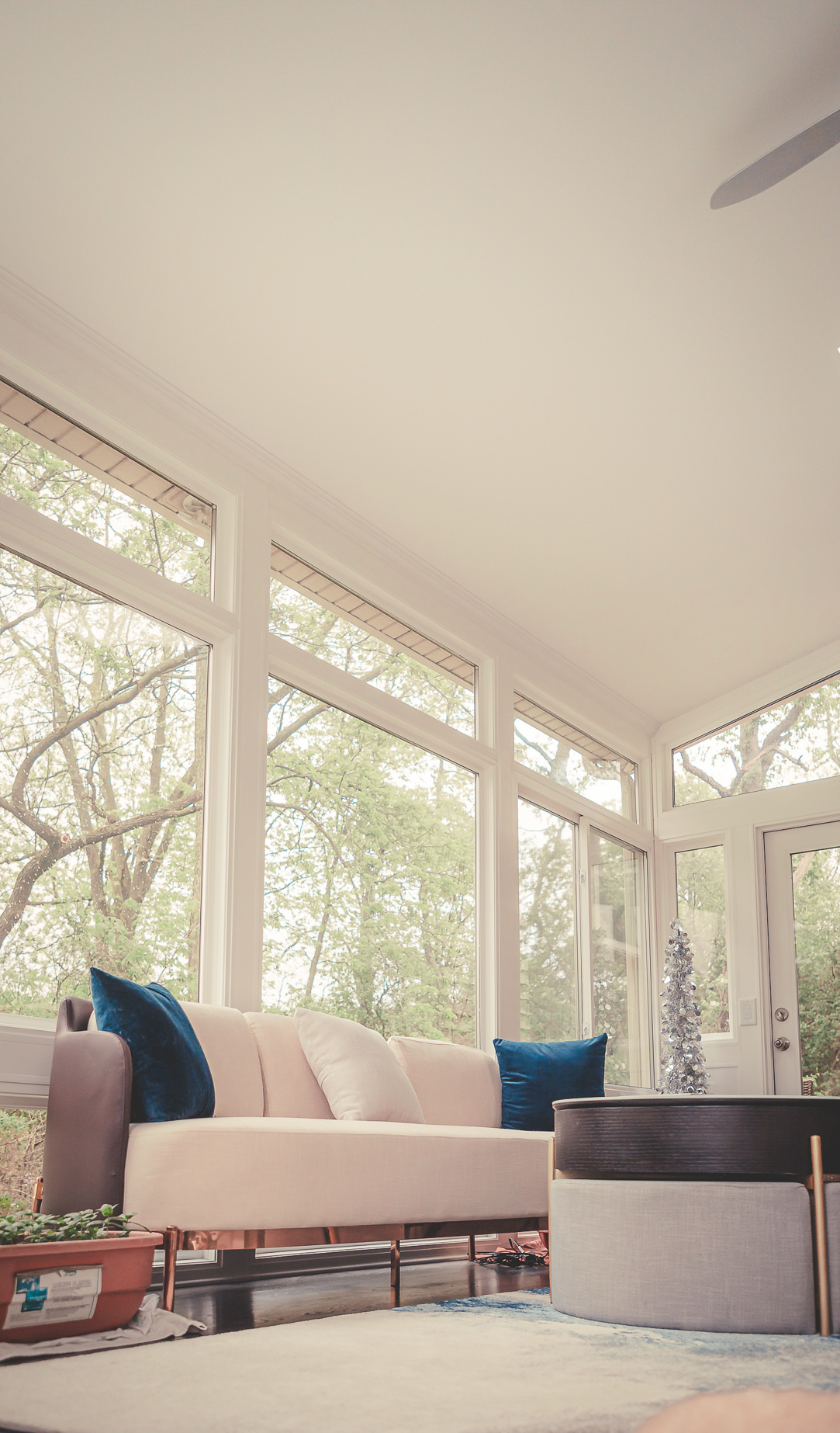 Fading furniture is caused by prolonged exposure to ultraviolet light. By default, our sunroom windows include at least LoE2 glass – this is an extremely high performance glass that reflects the vast majority of incoming UV rays, protecting your interior decor from fading and discoloration. Nonetheless, if you are worried about fading fabrics, you can buy indoor/outdoor fabrics.