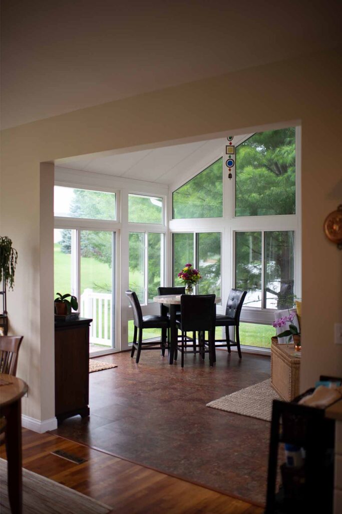 The Stock’s wanted to enjoy the outdoors, though, and some friends suggested they consider a sunroom. In a sunroom, they could bring the feelings of the outdoors inside. The beautiful pine trees bordering the back wall, for example, could line the windows and make the couple feel like they were living in a mountain vacation home year-round.