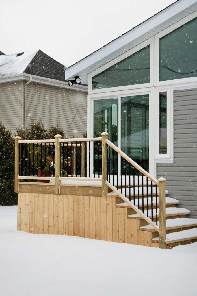 Many of the contractors they talked with built sunrooms made mostly of aluminum. Some of these sunrooms looked like they could fit the design criteria the Allreds had, but Olivia and Dallin also recognized that aluminum transferred cold and heat easily. The winters where they live get very cold, and the summer’s heat is equally extreme. During these months, the deck went unused, and the family knew a poorly insulated sunroom would go unused as well. Because of this, the Allreds leaned away from contractors selling aluminum sunrooms.